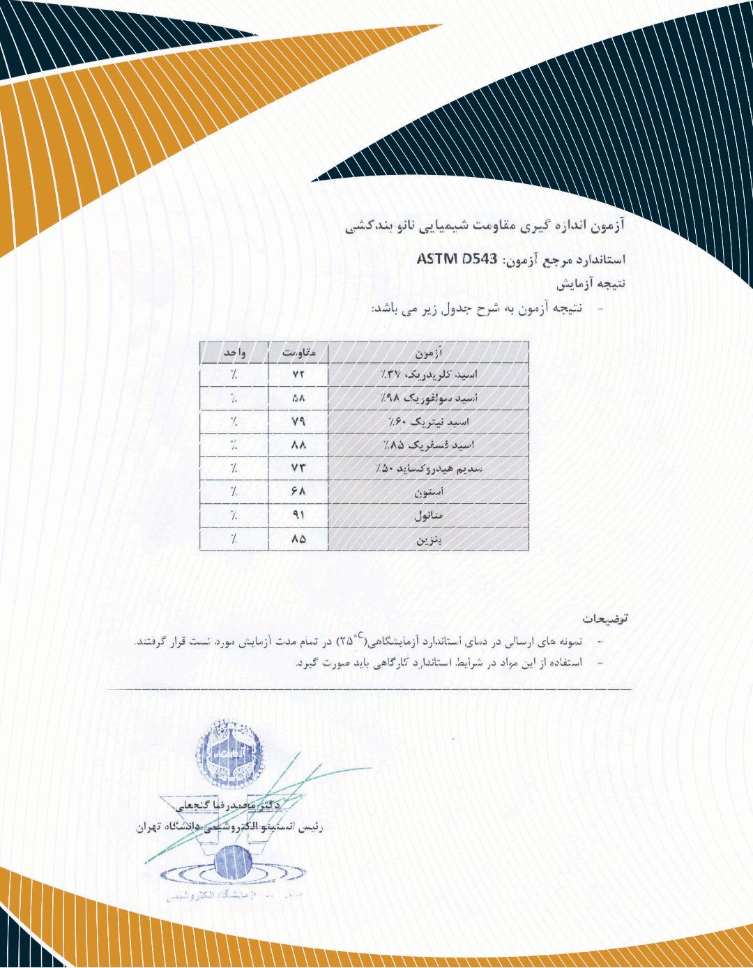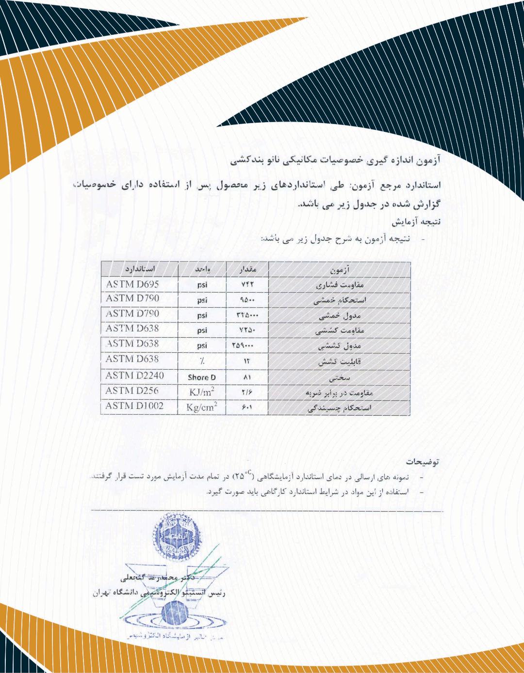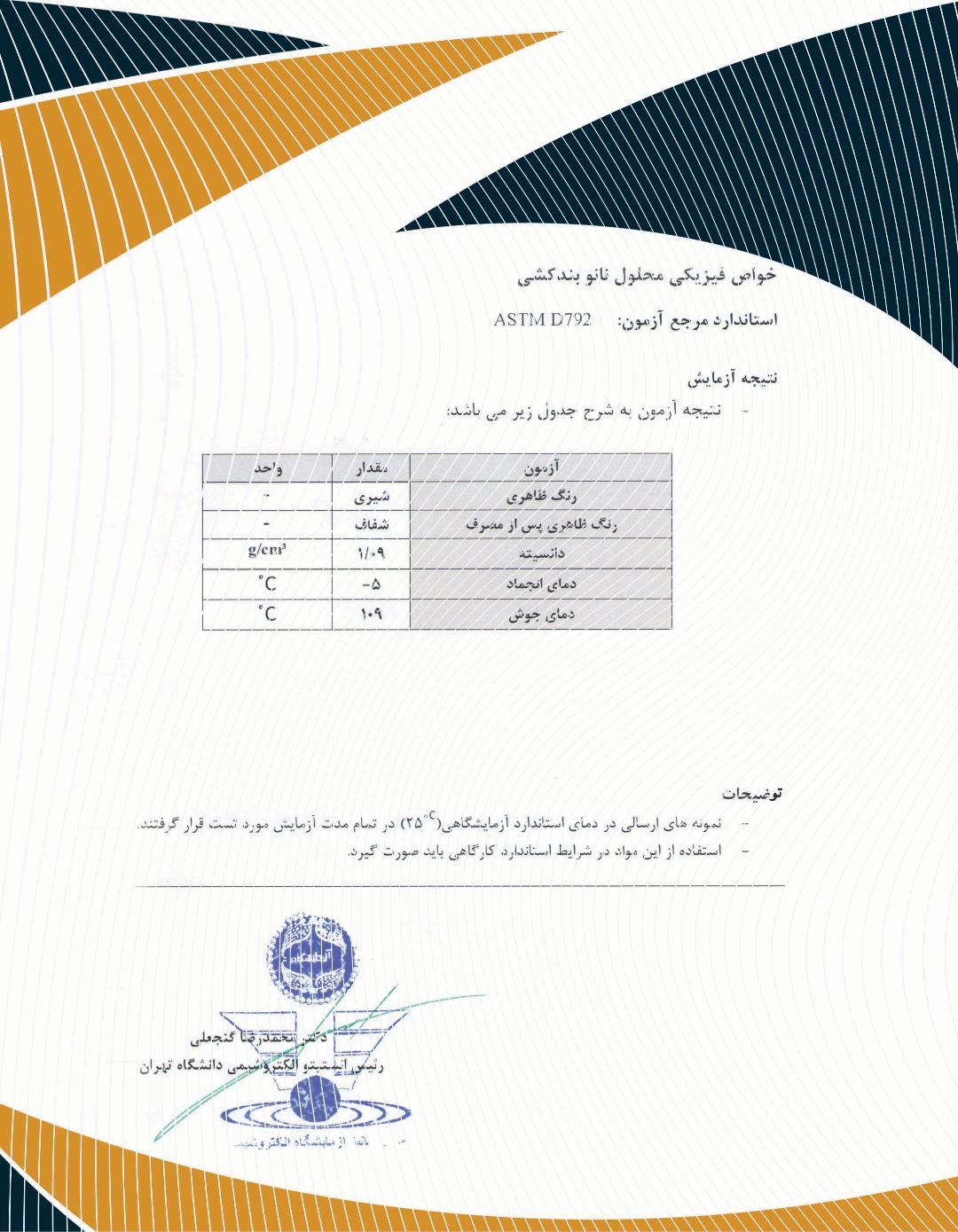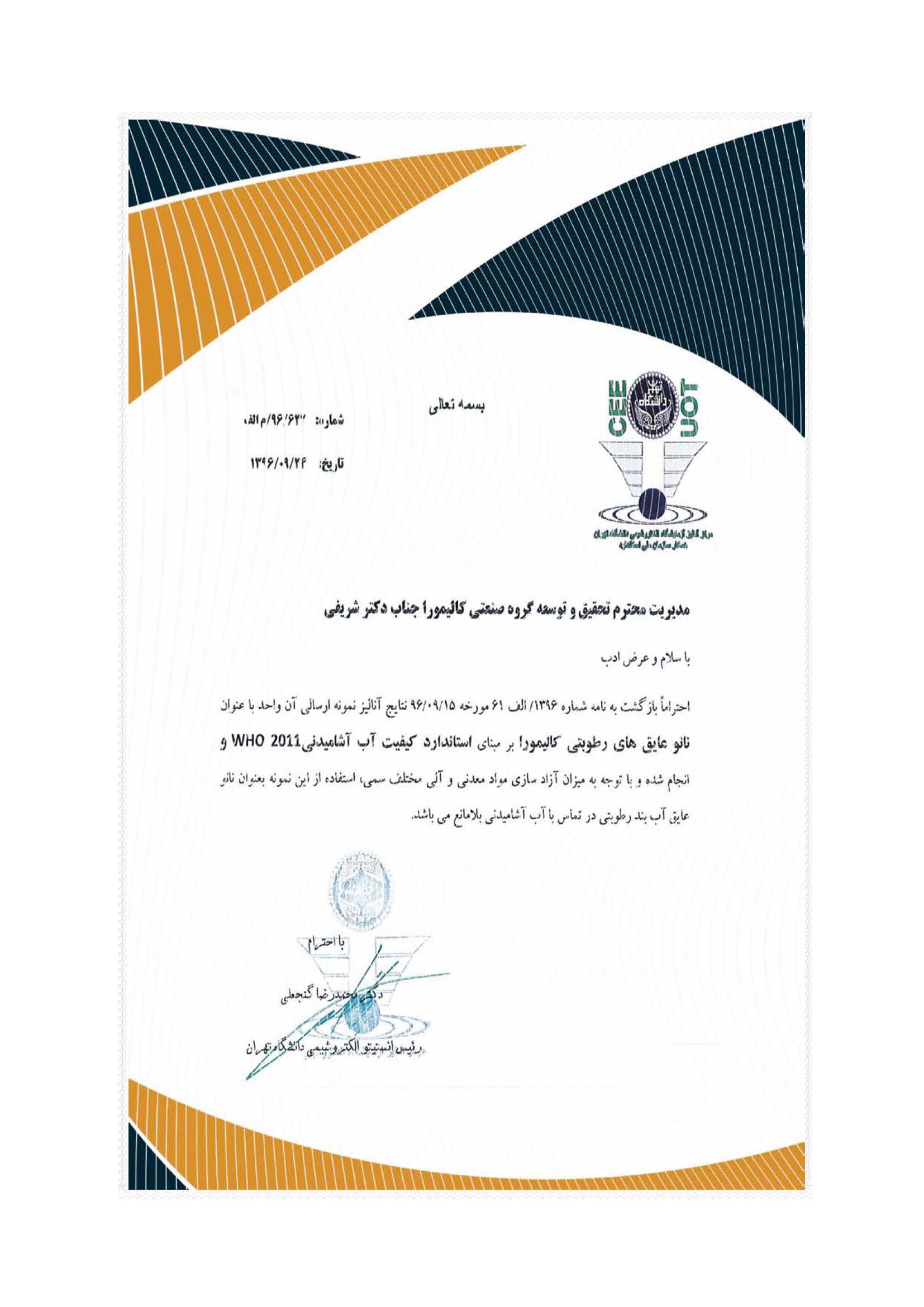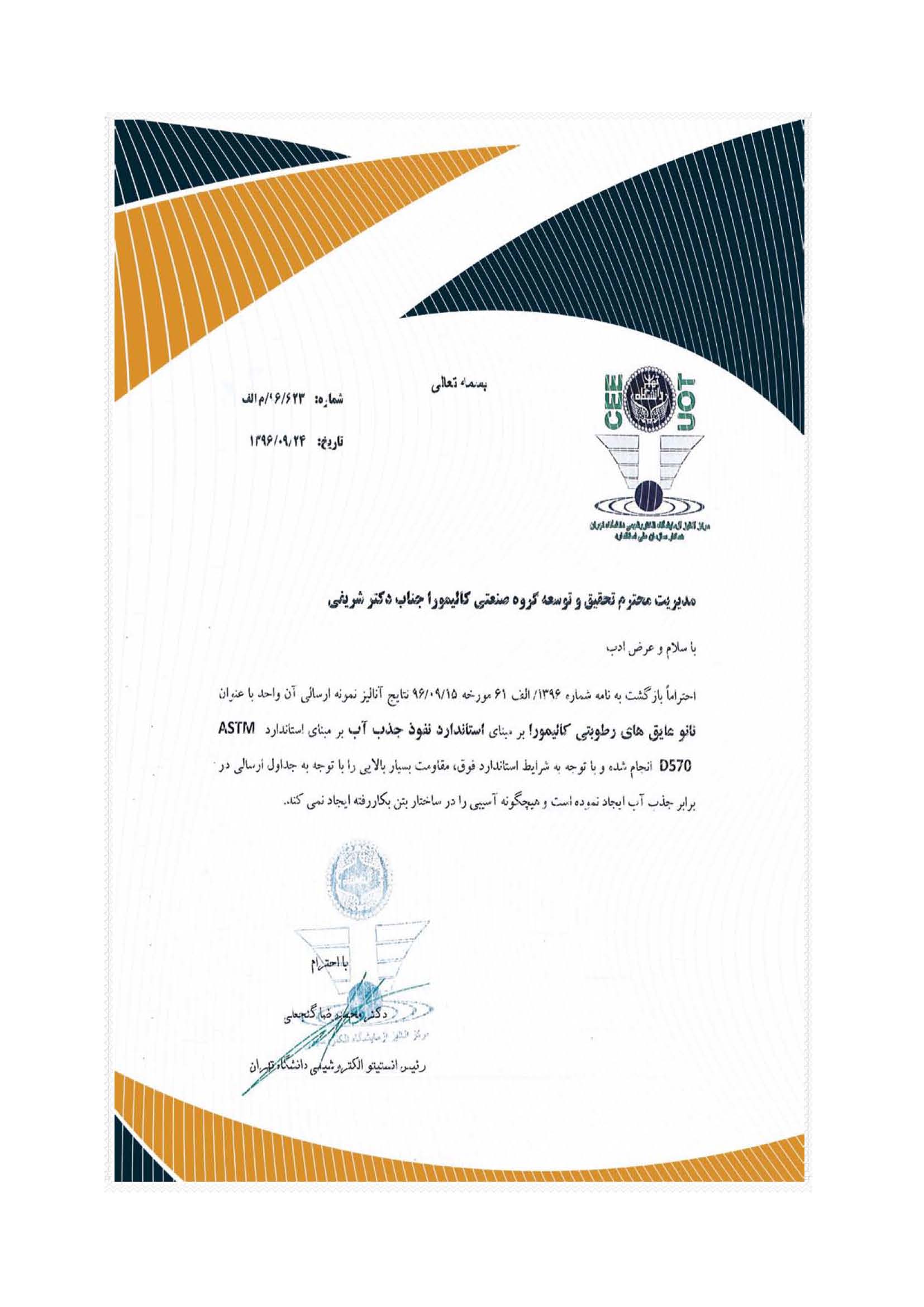 - کالیمورا دارای گواهینامه معتبر از مراجع ذی صلاح طبق استانداردهای BS 6920 اروپا که میزان آزاد سازی مواد معدنی و آلی سمی، نانو عایق رطوبتی در تماس با آب آشامیدنی بلامانع است.