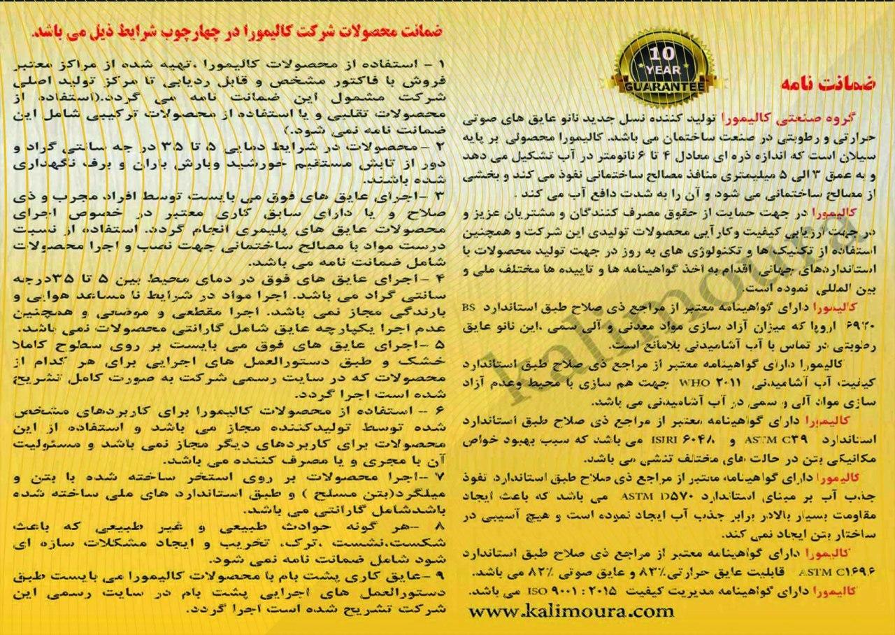- محصولات شرکت کالیمورا دارای 10 سال ضمانت می باشد.