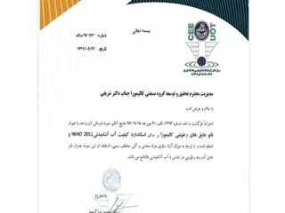 - کالیمورا دارای گواهینامه مدیریت کیفیت 2015 : ISO 9001 می باشد.